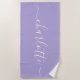 Serviette de plage personnalisée avec nom de script tendance mignon en lavande violet