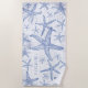 Pour un voyage à la plage prenez cette serviette de plage inspirée côtière. Caractéristiques de conception ce un motif des étoiles de mer bleues et blanches sur un recouvrement de carte du monde. Personnalisez un nom pour celui d'un cadeau aimable. Conçu par le ©Tim de renommée mondiale Coffey d'artiste.
