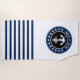 Votre nom personnalisé ou nom de bateau (Captain Rank ou Custom Text), avec une Ancre nautique personnalisée, étoiles et rayures sur un bleu marine élégant et noir sur une serviette de plage blanche. Cette serviette personnalisée ne vous permettra pas seulement de vous sécher, mais aussi de vous amuser en conversation. Fait un objet cadeau pour toute occasion.