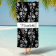 Serviette de plage personnalisées, noir & blanc, de nom floral.