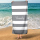 Nom Moderne Personnalisé Gris Serviette De Plage De Piscine À Rayures Grises.