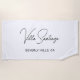 Les serviettes de bain et de bain personnalisées chic portent le nom de votre résidence dans un script manuscrit noir moderne et chic avec des informations de localisation tout casquette simples. Personnalisez avec le nom de votre maison - Villa + Nom ou autre titre préféré - et la ville et l'emplacement de l'état.