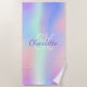 Serviette De Plage Nom monographique en violet rose holographique