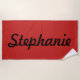 Serviette de plage avec nom noir ou initiales monogrammes sur un arrière - plan rouge. Personnalisez avec votre nom ou vos initiales monographiques en utilisant le modèle facile. La couleur de police, le style de police, la taille de police et la couleur arrière - plan sont personnalisables. Moderne et tendance, un design classique qui ne dénote jamais. Parfait pour tous les jours.