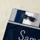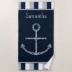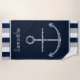 Ce design d'ancre personnalisé est dessiné à la main avec de l'art linéaire sur un arrière - plan bleu marine. Les bordures du haut et du bas sont décorées de rayures gris, bleu marine et blanc. Pour cette touche spéciale, personnalisez ce design avec votre propre nom. Idéal pour une maison de plage ou un passionné de sports nautiques !