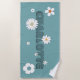 Serviette De Plage Nom personnalisé Fleurs de style bleu rétro
