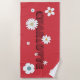 Serviette De Plage Nom personnalisé Fleurs de style rouge rétro