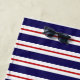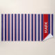 Serviette de plage rayée de cabane rayée avec motif rayé bleu, rouge et blanc. Personnalisez avec votre nom.