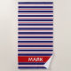 Serviette De Plage Nom Personnalisé Red Blue and White Cabana Stripe
