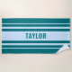 Serviette De Plage Nom personnalisé Vacances Turquoise de famille tri