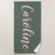 Rose poudré et Vert Forêt Minimaliste Calligraphie Nom personnalisé Serviette de Plage