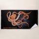 Une pieuvre orange sur fond de noir. Tentes d'octopus dans et autour des bulles et mandala bleu