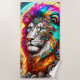 Cette serviette de plage est ornée d'un lion d'art.