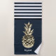 Serviette De Plage Or MetallicAnanas Nautique Marine Bleu strié