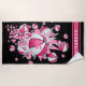 Cette amusante serviette de plage sur le thème du basket présente une "explosion" de balles de basket rose et blanc de taille variée et des formes d'étoiles grises, roses et blanches sur un arrière - plan noir - un motif de pois blancs minuscules couvre l'étoile rose - customisez avec le monogramme de l'athlète sur le graphique des balles de football et nom sur bandes de varsité rose orientées verticalement - par katz_d_zynes
