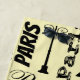 Paris design de texte pour la Saint-Valentin aux formes coeur rouge, Tour Eiffel et lampes de rue décoration arrière - plan jaune