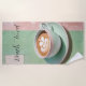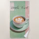 This is a soothing still life painting focused on a cup of coffee with latte art. The cup itself is a pale, mint green or aqua color, resting on a matching saucer, and filled with a rich brown liquid topped with a white, heart-like or tulip design. The background is abstract and divided into large, simplified blocks of color, predominantly pastel shades of mint green and blush pink. These color blocks feature a subtle, painterly texture with visible brushstrokes, giving the scene a soft, almost hazy feel. The composition combines the realistic subject of the coffee cup with a geometric and tonal background, creating a calm and contemplative atmosphere.