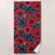 Serviette De Plage Pavot rouge et brunes, feuilles bleus sur noir