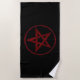 Pentagramme rouge, inversé, texturé en cercle, sur arrière - plan noir. Symbole occulte 666