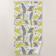 Parrot d'ara gris et jaune éclatant Dessin d'une serviette de plage Motif tropicale. Zara dessinée à la main et feuilles tropicaux et fleurs aux couleurs jaunes et grises tendance.