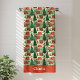 This camping-themed beach towel design is complete with a seamless pattern of cute brown bears, red tents, and a forest in a watercolor style as well as a place to add your name.