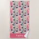 This nautical watercolor tropical fish beach towel design is complete with a seamless pattern of pink and navy blue angelfish as well as pretty pink background color and a place to add your name.