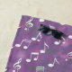 This music note beach towel design is complete with a seamless pattern of white music notes as well as a watercolor purple background color and a place to add your name.