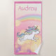 Unicorn Serviette de plage personnalisée. Arrière - plan en rose chaud (vous pouvez changer cette couleur en la sélectionnant, puis sélectionner modifier et vous pouvez changer de couleur) ou nous vous aiderons volontiers.