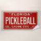 This fun towel is a great way to show off your love for pickleball and will be perfect for your next beach day, boat trip or pool party. Travel back in time to the year 1969 with this retro-inspired Florida license plate design, created especially for pickleball fanatics. Bold embossed-look cream text with the custom tag number PICKLEBALL pops on the red contrast. The vintage style lettering, Sunshine State slogan, and panhead screws bring a nostalgic vibe.
