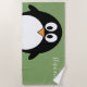 Serviette De Plage Pingouin mignon avec nom manuscrit vert Whimsical