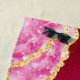 Créez une serviette de plage ceinturée unique qui présente un design élégant en marbre rose avec une parties scintillant en faux or. Utilisez le modèle pour taper votre lettre initiale et votre prénom. La serviette de plage se vend à elle seule (sans accessoires présentés sur les images in situ).