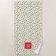 Serviette de plage monogrammée au monogramme rose sur un motif botanique de palmier tropical vert et des fleurs exotiques roses.