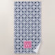 Serviette De Plage Pink & Navy Hawaiian Pattern Monogram