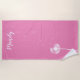 Cette serviette de plage rose est décorée de votre nom, d'un délicat dandelion blanc et de graines qui soufflent, ce qui en fait l'accessoire parfait en été.