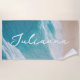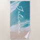 La serviette de plage Tropical Beach Sand Ocean Waves offre une vue aérienne sur les vagues bleues de l'océan qui s'élèvent sur une plage de sable. Personnalisez-le avec votre nom dans une police de caractères élégante et blanche.