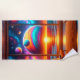Cette serviette de plage a un coucher de soleil artistique avec quelques planètes dessus.