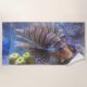 Sur ce Beach Towel, le charmant poisson-lionfish nage dans un aquarium coloré d'eau salée. C'est une photo originale de ZoeSPEAK, montrant le motif de bandes épaisses et fines et de nageoires fantaisistes sur ce poisson à l'allure inhabituelle. C'est une photo colorée avec le bleu tropical, jaune et rose de l'aquarium et le nez rose saumon du poisson.