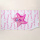 Cette serviette de plage est présentée dans un joli imprimé d'étoiles de mer rose et blanc. Customisez cet objet ou achetez tel quel.