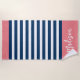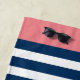 Serviette De Plage Preppy Nautical Stripe Navy Calligraphie rose