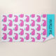Cette serviette de plage amusante est ornée d'adorables baleines roses avec de mignonettes bleu aqua. Personnalisez l'aqua et la bande rose correspondant avec votre choix de nom ou de texte spécial.