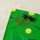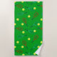 Serviette de plage colorée et amusante avec un motif de raquettes de tennis en bande dessinée et des balles de tennis jaune vif. Sur un court de tennis arrière - plan vert.