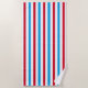 Serviette de plage mince et verticale rouge, blanche et bleue. Les couleurs du drapeau américain patriotique dans un rétro moderne classique sont prêtes pour l'été!