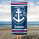 Serviette De Plage Rayures de corde et Monogramme Ancre