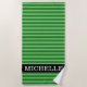 Caractéristiques de conception ce de plage de serviette un motif des rayures/des lignes vert clair et vert-foncé. Il comporte également un nom personnalisable en texte coloré par blanc dans un secteur coloré par obscurité sur l'avant. [~Z0000000]
