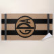 L'ensemble de monogramme de trois lettres sur un cercle bronzage, avec la frontière circulaire noire, au-dessus de la cabane large barre la serviette de plage ou de club.