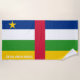 Drapeau de la République Centrafricaine Splendid Patriotic Beach Towel avec drapeau de la République Centrafricaine imprimé sur toute la serviette. Les couleurs du drapeau national sont complétées par le texte "République centrafricaine" en bas. Le texte est entièrement personnalisable à l'aide de la fonction "Customiser !". N'hésitez pas à le modifier, à le supprimer ou à ajouter le vôtre. Ce design charmant est le cadeau magnifique et le partenaire idéal pour la journée ensoleillée sur la plage. © PaysDuMonde