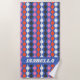 Serviette De Plage Retro Abstrait Stripes bleu rose Nom personnalisé