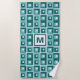 Serviette De Plage Retro Blue Geometric Squares Pattern Monogram