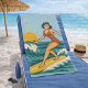 This sunny blue towel will turn heads and is perfect for your next beach day or pool party! The retro-inspired surf art features a surfing pin-up riding an endless wave beneath the blue sky and shining sun. Designed with old-school California energy, the distressed look gives it an authentic feel, like it was pulled straight from a vintage surf shop.