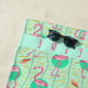 Ce joli, original motif de flamant a une rétro torsion d'art déco avec un motif géométrique. Fait aux nuances lumineuses de l'orange rose et d'or sur un champ de vert gai d'été, ce motif élégant et tropical inclut également des frondes de fougère. Personnalisez cette serviette de plage avec votre nom. Quand vous utilisez le modèle des textes, votre nom apparaîtra sur les deux extrémités de la serviette (upside-down au dessus, pour le visionnement facile tandis que vous les prenez un bain de soleil). Dirigez à la plage dans le style avec cette belle serviette de flamant !